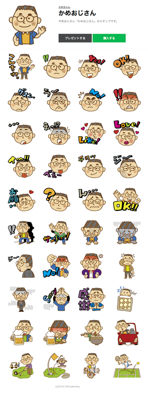 私自身のキャラクターをもとにした中年おじさん「かめおじさん」です。